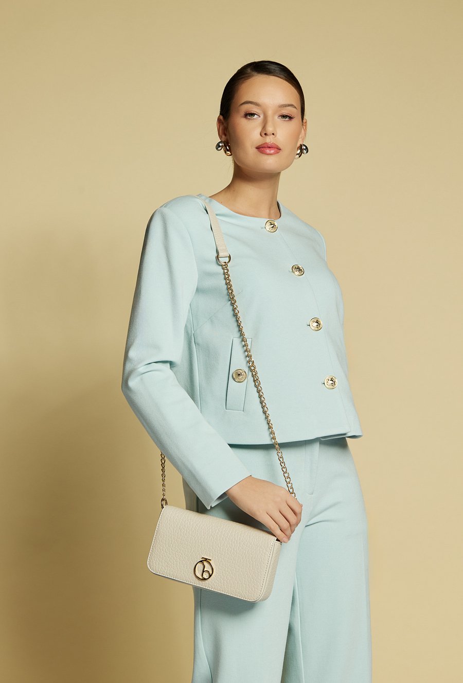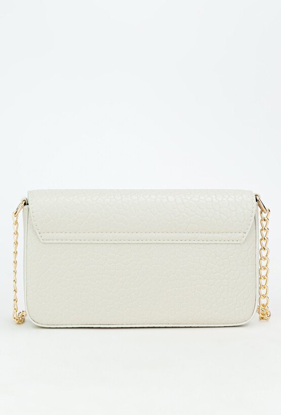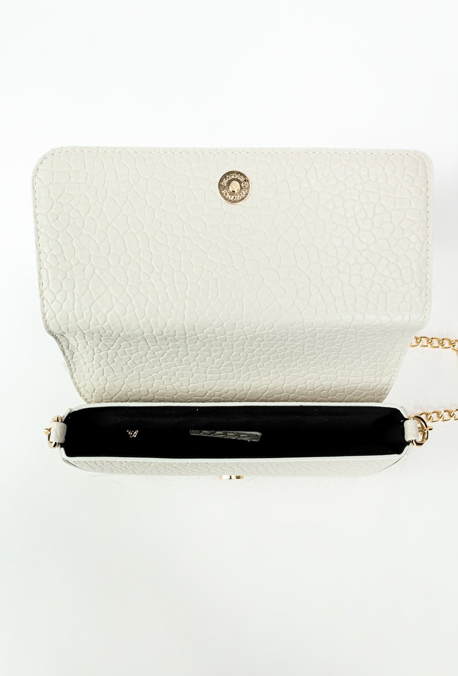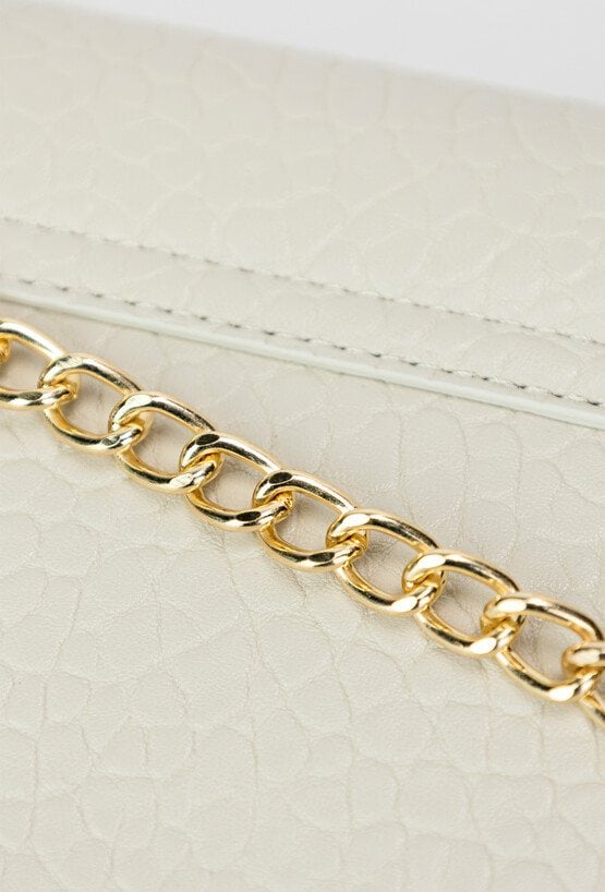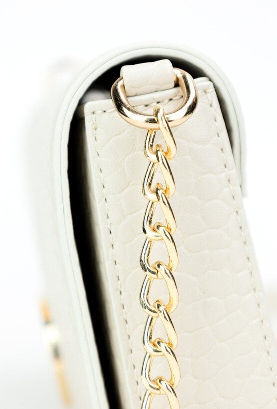 Elegancka wizytowa torebka damska o wymiarach 22 cm x 12 cm x 3,5 cm. Stylowa i funkcjonalna – jednokomorowa, z dodatkową kieszonką na drobiazgi. Zapinana na klapę z napą, subtelnie podkreślona paskiem z ozdobnym łańcuszkiem. Idealny dodatek na wyjątkowe okazje. Torbę należy przechowywać w dołączonym woreczku.