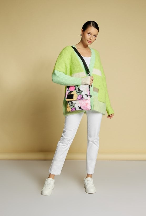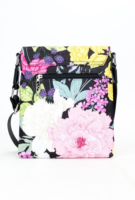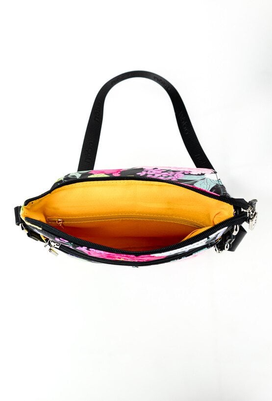 Wzorzysta torba damska o wymiarach 23,5 cm x 28 cm x 2 cm. Jednokomorowa, zapinana na suwak oraz klapę z napą, łącząca funkcjonalność z modnym designem. Posiada praktyczne kieszonki z przodu i z tyłu, zapinane na suwak, idealne na drobiazgi. Zawieszona na regulowanym pasku, który zapewnia komfort noszenia. Idealna na co dzień! Torbę należy przechowywać w dołączonym woreczku