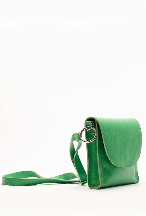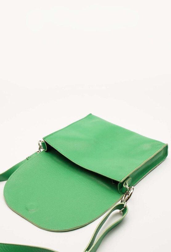 Klasyczna listonoszka z naturalnej skóry licowej o prostym fasonie i półokrągłej klapie na magnes. Wnętrze jednokomorowe z bawełnianą podszewką, kieszonką na zamek i logo AKARDO. Regulowany pasek, srebrne karabińczyki i eleganckie detale. Worek przeciwkurzowy w zestawie. Wymiary: 18 x 21 x 3,5 cm